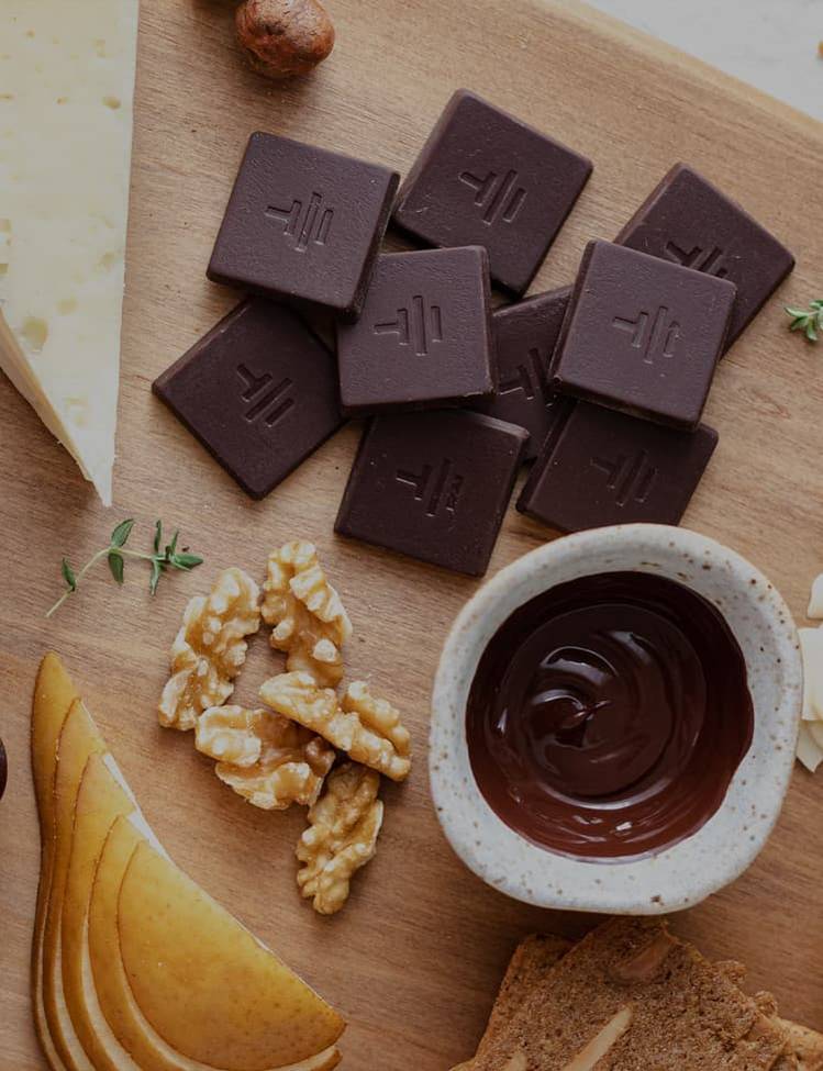 Dark chocolate with an intense umami flavor from tucupí, a fermented cassava sauce with chilies.65% cacao - 2 servings