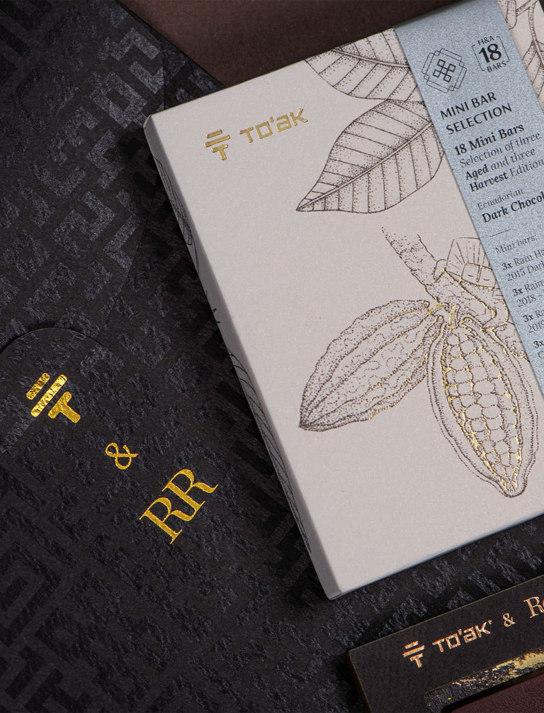We make limited-edition chocolate that is produced like a vintage wine and often aged like a whisky—in some cases up to six years in specialty casks imported from around the world. Our packaging is also a work of art—some editions are presented in a handcrafted wooden box with the individual bar number engraved on the back. The wooden boxes include proprietary tasting utensils and a color booklet that explains our chocolate-making process and provides an expert guide to tasting and pairing.