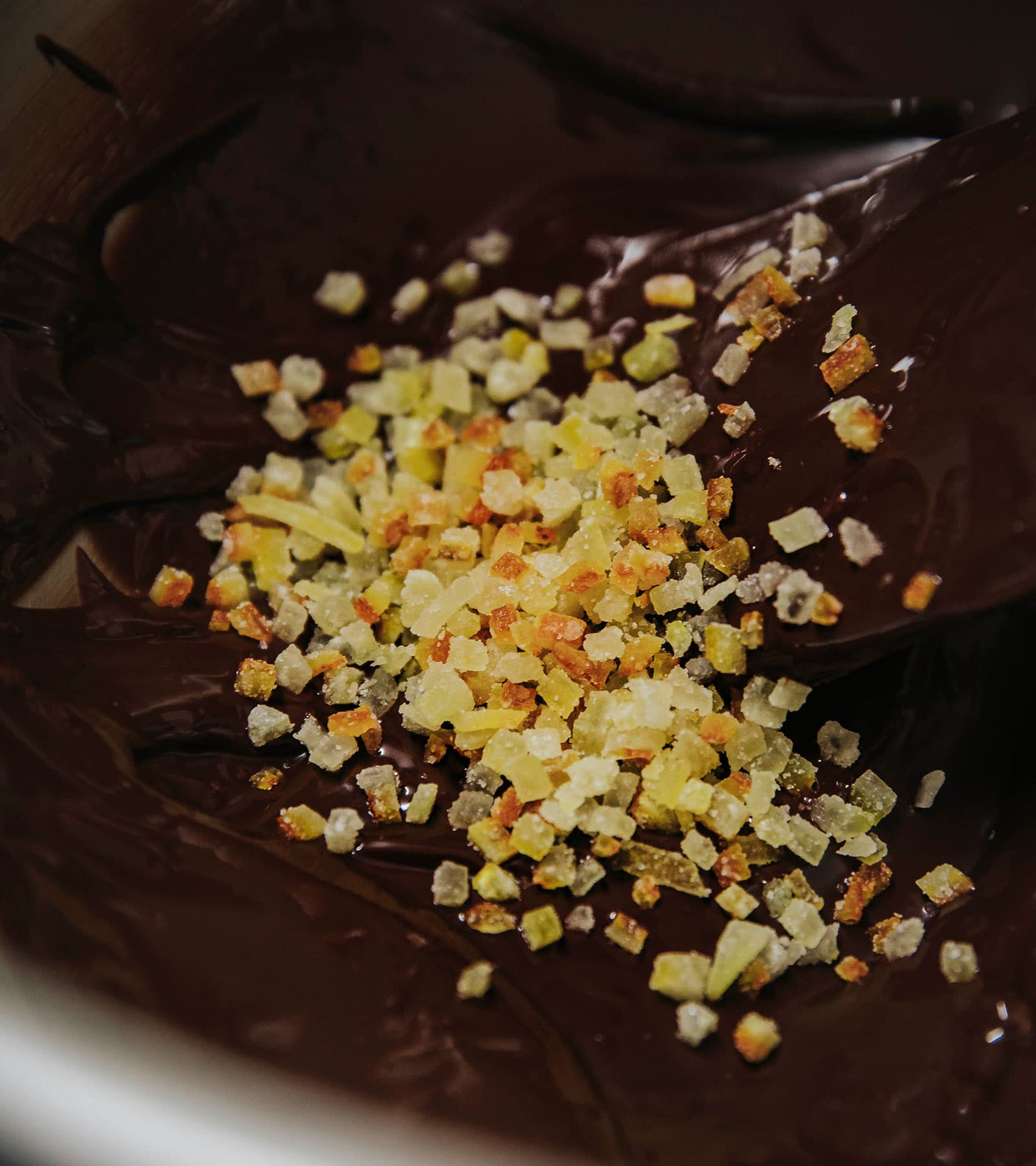 Dark chocolate (65% heirloom cacao, 35% cane sugar), candied Galapagos orange (orange peel, cane sugar), Galapagos sea salt crystals, cacao butter