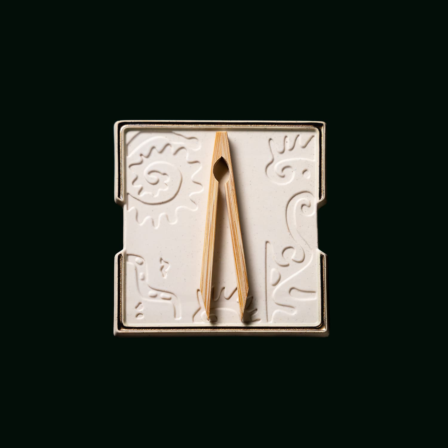 * Tasting plate made of sustainably sourced Spanish Elm wood with a layer of artfully engraved bronze